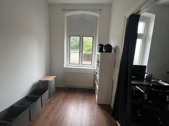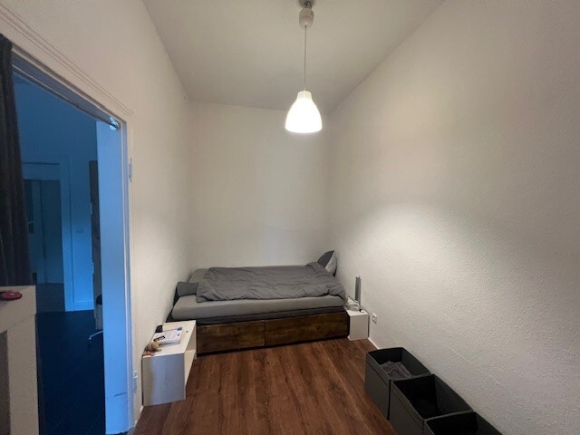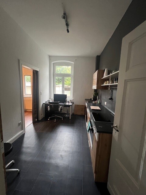 Über den geräumigen Flur gelangen Sie in die großzügige Wohnküche. Mit einem großen Fenster ist der Raum sehr schön hell und bietet sich auch als Wohn/ Essbereich an. Von hier aus gelangen Sie in den 2. Raum, das Schlafzimmer.