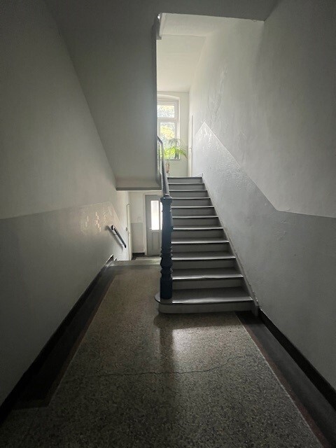 Die renovierte Altbauwohnung erfreut sich einer kompakten Aufteilung mit einer baujahrgerechten (1901) wunderbaren Raumhöhe, zwei gut geschnittenen Räumen und einem modernisierten Duschbad.