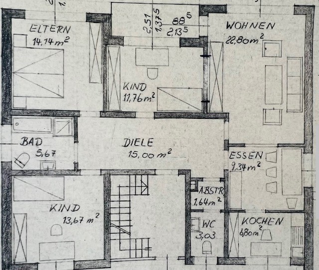 Die Gesamtwohnfläche beträgt ca. 285 m² und verteilt sich auf drei abgeschlossene Wohneinheiten.
