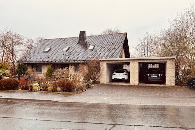 Der Außenbereich besticht durch das großzügige Gartengrundstück, das den Bewohnern vielfältige Nutzungsmöglichkeiten bietet. Zwei Garagen sowie ein zusätzlicher Stellplatz sorgen für ausreichend Parkmöglichkeiten.